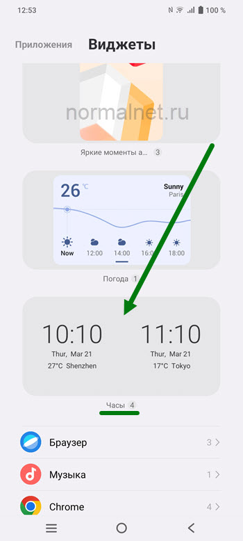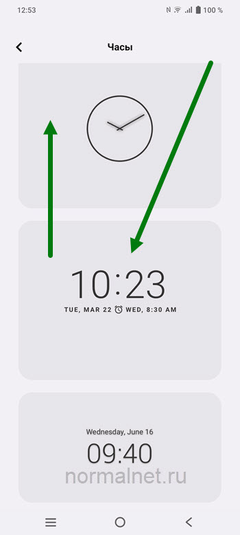 4. Внимание выбираем понравившийся циферблат, нажимаем на него удерживаем некоторое время, неотпуская сдвигаем вверх.
