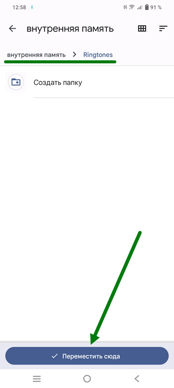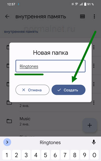 4. Даём название Ringtones новой папке, после жмём на кнопку «Создать».