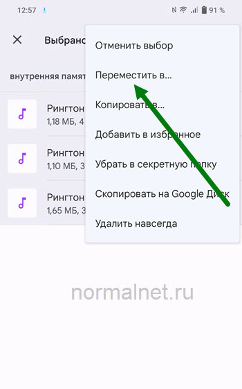 7. В открывшемся окне, жмём на пункт «Переместить в».