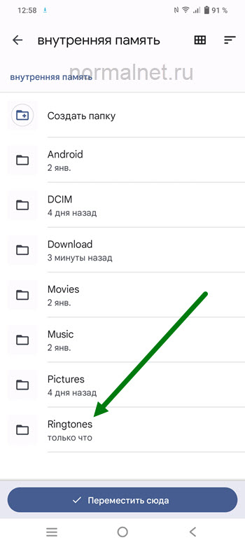 Для того чтобы в списке родных мелодий, отобразились скачанные рингтоны, и мы смогли установить их на вызов определённого контакта.
