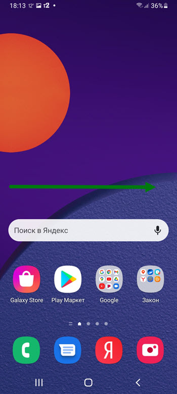 Располагается она c лева от главного рабочего стола, а открывается свайпом вправо.