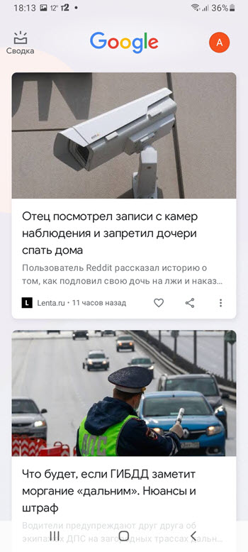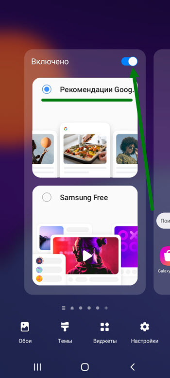 Помимо основных рабочих столов, на телефонах Самсунг так-же присутствует страница рекомендаций Google, либо Samsung free.