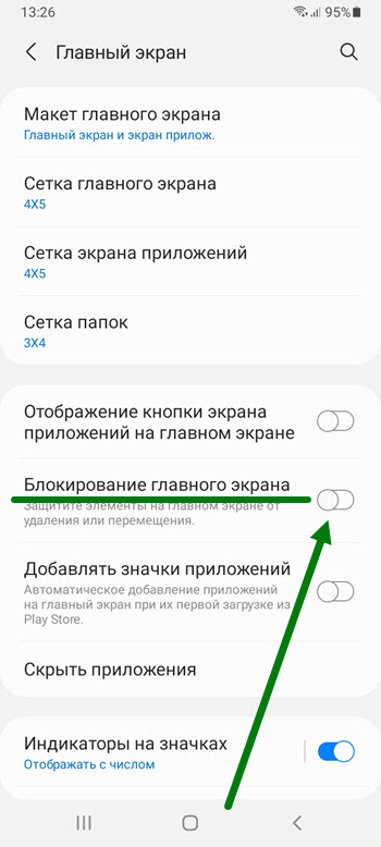 Как запретить перемещать иконки, ярлыки, папки на главном экране телефона Самсунг