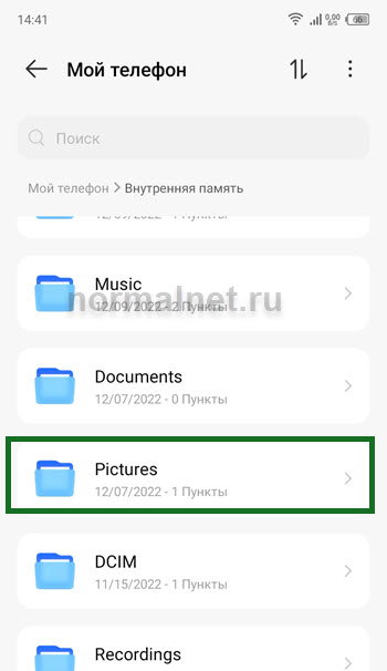 Все созданные файлы, сохраняются во внутреннюю память устройства, в специальную папку.