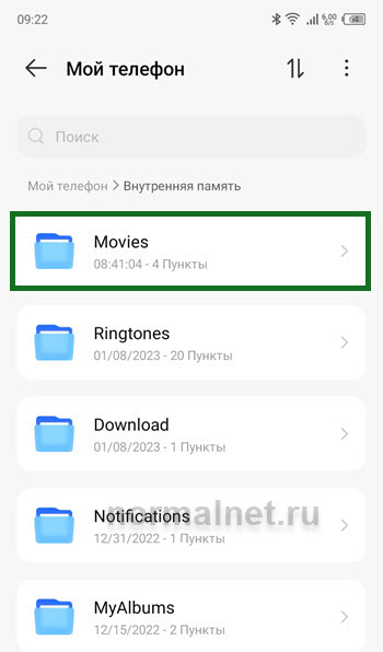5. В самом верху открывшейся страницы, располагается папка «Movies», открываем её.