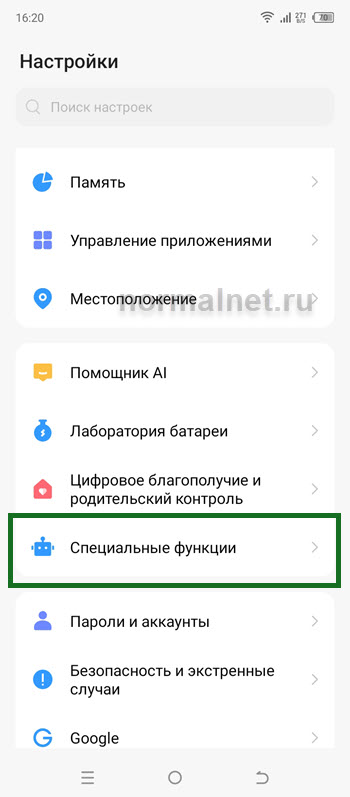 2. Далее переходим в раздел «Специальные функции».