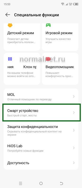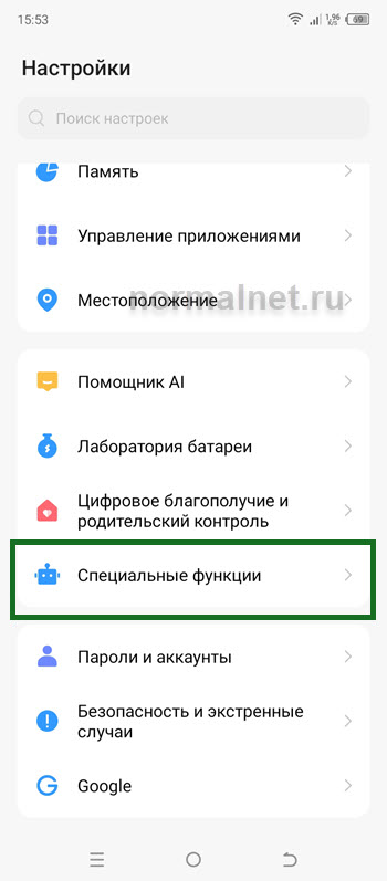 2. Далее переходим в раздел «Специальные функции».