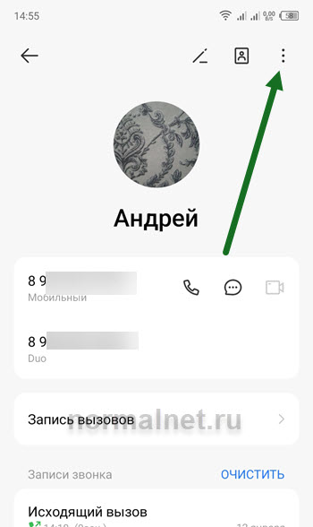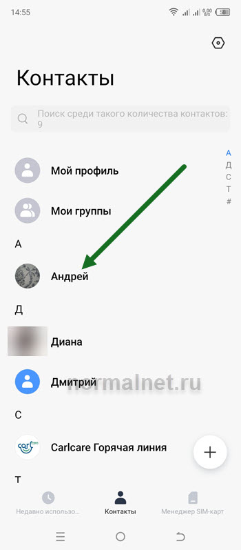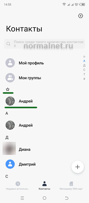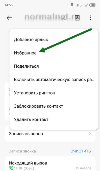 6. Поставленная задача выполнена, теперь данный номер дублируется в верху списка, под звёздочкой в разделе избранное.