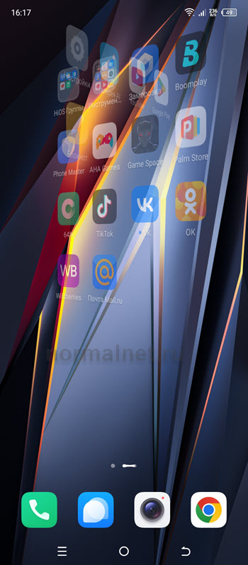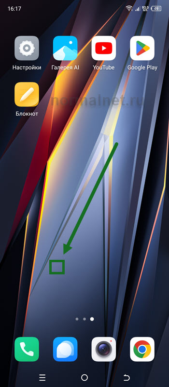 1. Нажимаем на свободную часть дисплея и удерживаем некоторое время, две — три секунды.