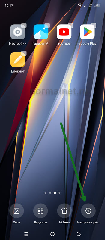 2. В появившемся в низу меню, выбираем пункт «Настройки рабочего стола».