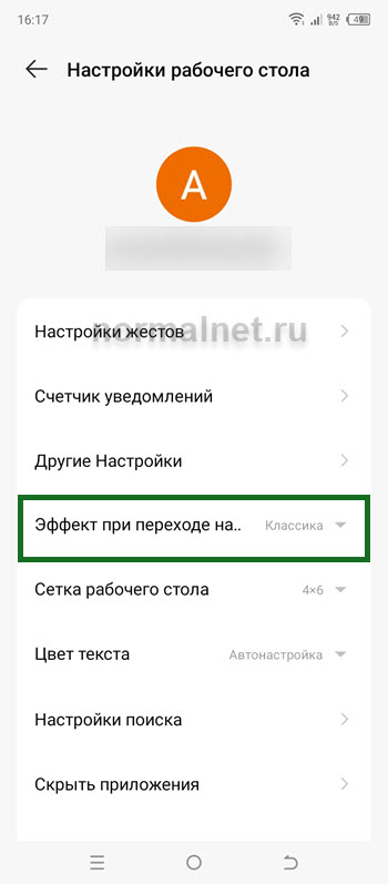 3. На открывшейся странице, нас интересует пункт «Эффект при переходе», жмём на него.