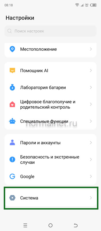 2. Спускаемся в самый низ открывшейся страницы и открываем раздел «Система».