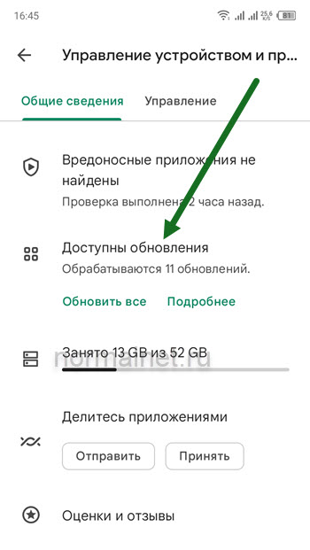 4. На открывшейся странице, нас интересует пункт «Доступны обновления».