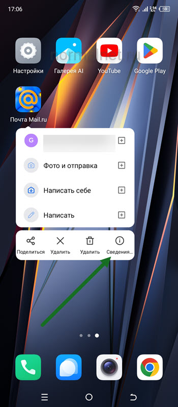 1. Нажимаем на ярлык выбранного приложения и удерживаем некоторое время, две — три секунды.