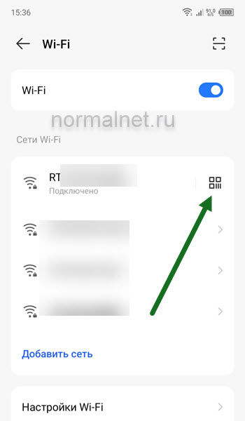 3. Жмём на специальный значок, напротив сети к которой подключен.