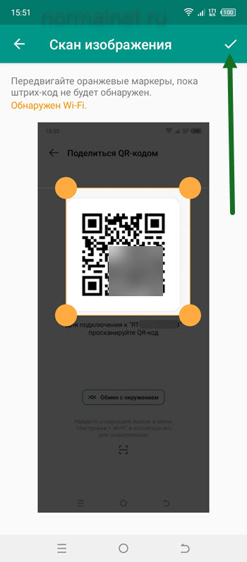 6. Выделяем квадрат с кодом, после жмём на галочку в правом верхнем углу экрана.