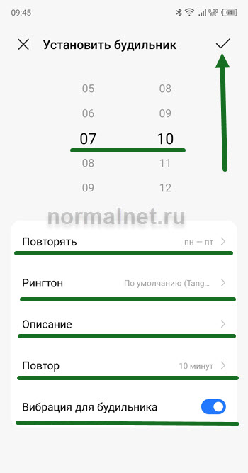 - При необходимости, поменять мелодию.