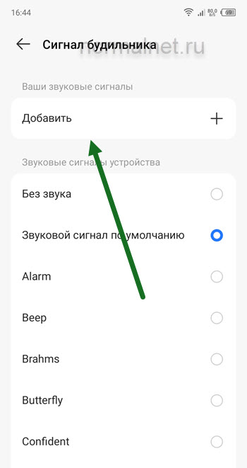 4. Слушаем родные звуки, если не устраивают, жмём на кнопку «Добавить».