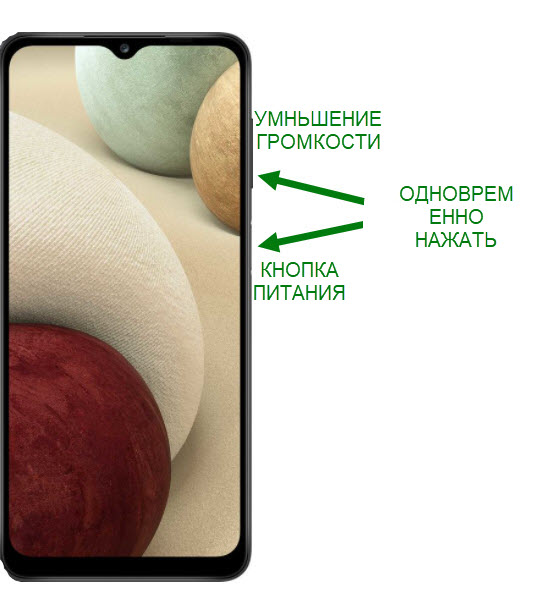 1. Одновременно нажимаем качель уменьшения громкости и кнопку питания.