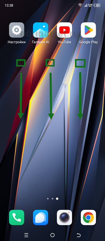 Тоже неплохой способ, одновременно касаемся тремя пальцами дисплея и сводим их в низ экрана.