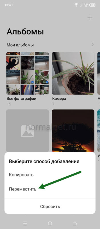 6. Теперь нам предлагают выбрать способ добавления, копировать или переместить.