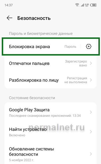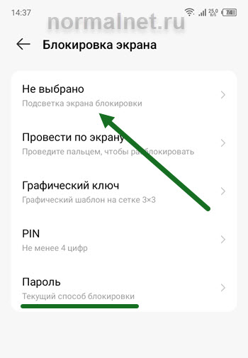4. В моём случае текущий способ блокировки экрана «Пароль».