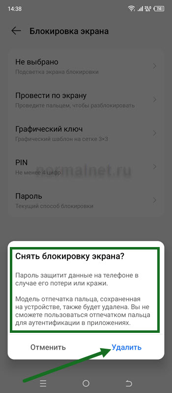 Я тоже так гонял, но после ответа тут девушки, что у нее в подсветке экрана, попробовал там где тут рисунок с зеленой стрелкой нажал провести по экрану, и телефон запросил отменить блокировку пином, я подтвердил, и теперь без пина. Автору +1 в карму. Спасибо!