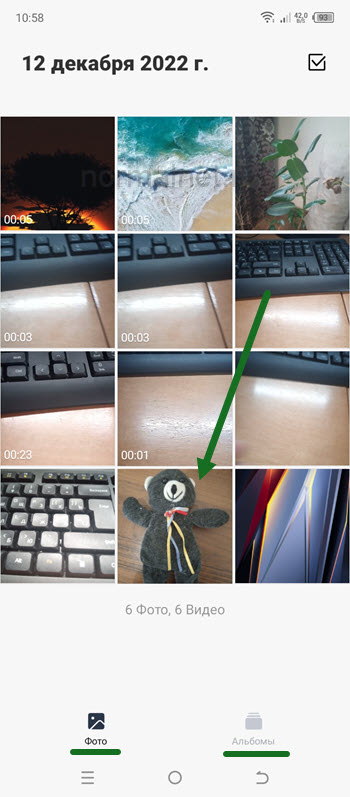 2. Находим нужное изображение в общих снимках, либо альбомах и жмём на него.