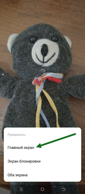 6. Во вновь открывшемся окне, необходимо выбрать область применения, главный экран, экран блокировки или оба сразу.