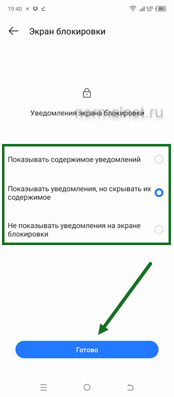 7. Остаётся выбрать, как будут отображаться уведомления на заблокированном экране и нажать на кнопку «Готово».