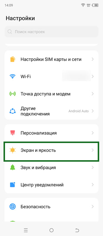 2. Находим раздел «Экран и яркость» и переходим в него.