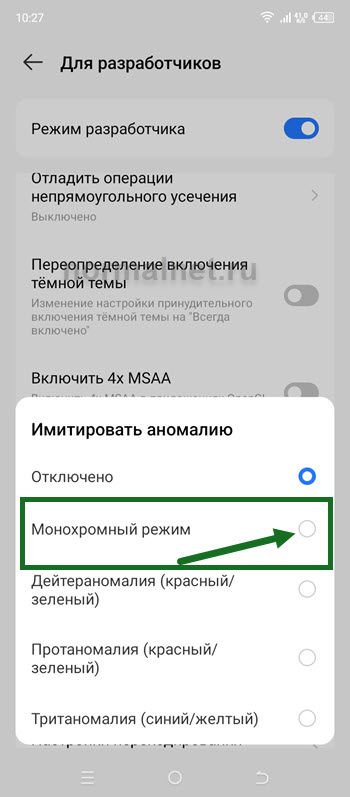 3. В открывшемся окне, выделяем «Монохромный режим».