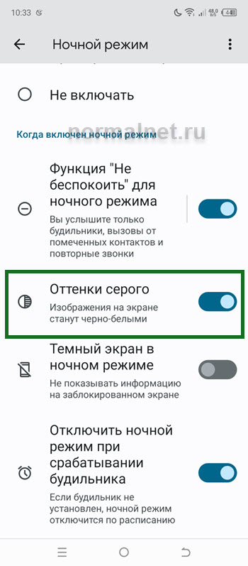 6. Проверяем чтобы был включен пункт «Оттенки серого», другие настраиваем по своему усмотрению.