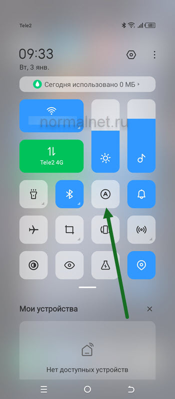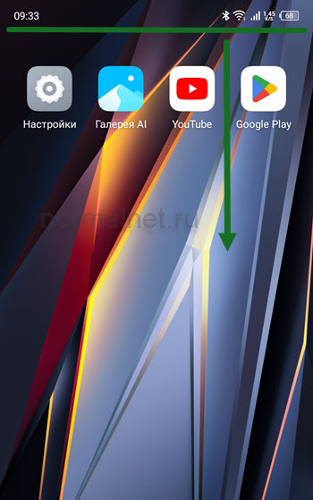 1. Опускаем шторку, движением пальца в низ по дисплею, в правой части.