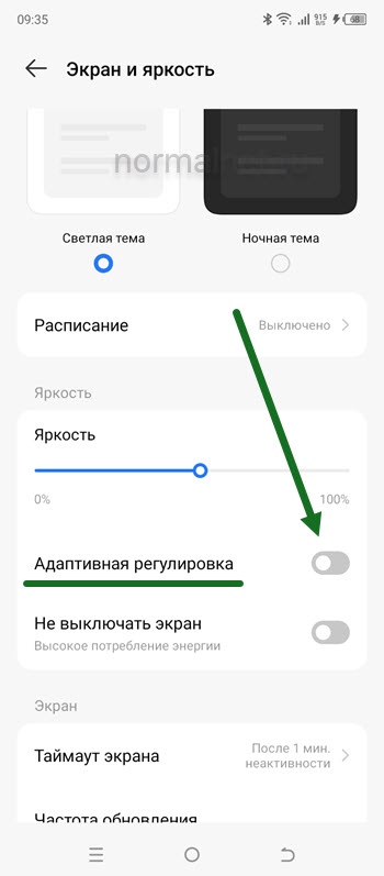 3. Находим строчку «Адаптивная регулировка», активируем или наоборот, деактивируем ползунок напротив неё.
