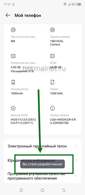 3. Нажимаем на пункт «Номер сборки» несколько раз.