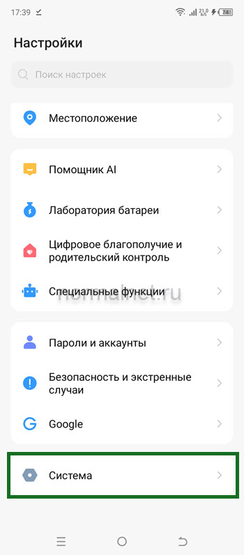 2. Спускаемся в самый низ страницы и переходим в раздел «Система».