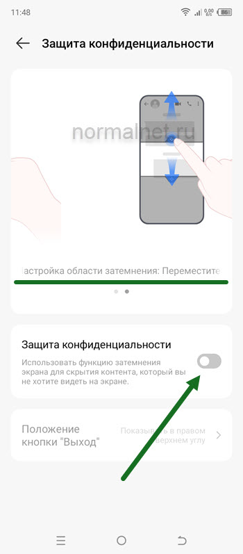 8. Настроить контрастность затемнения, в право сильнее, в лево слабее.