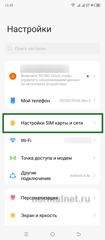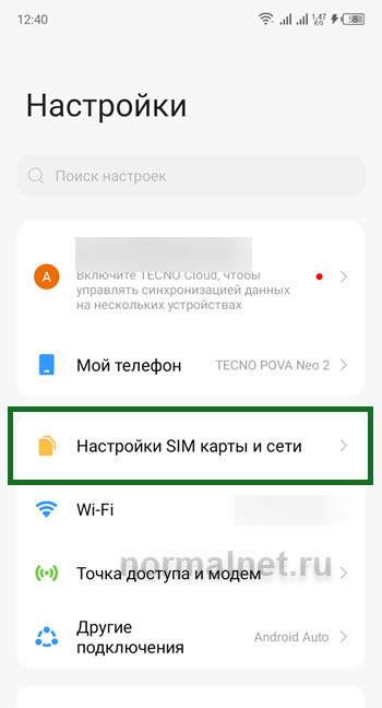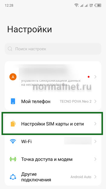 2. Далее переходим в раздел «Настройки SIM-карты и сети».