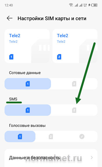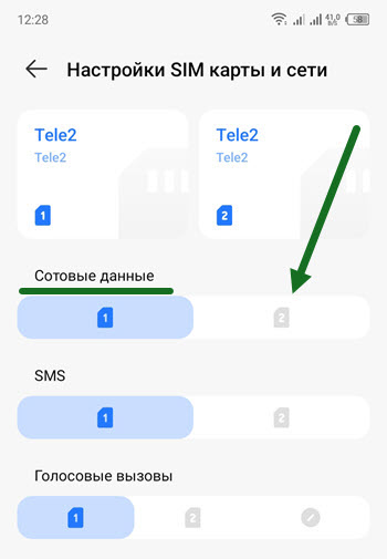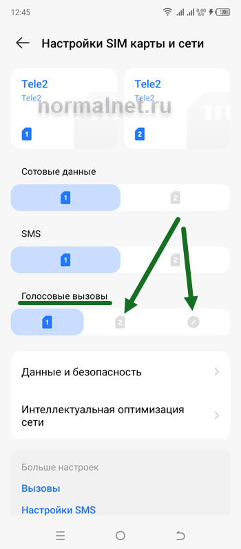 3. В строчке «Голосовые вызовы», мы можем выбрать номер карты для звонков по умолчанию.