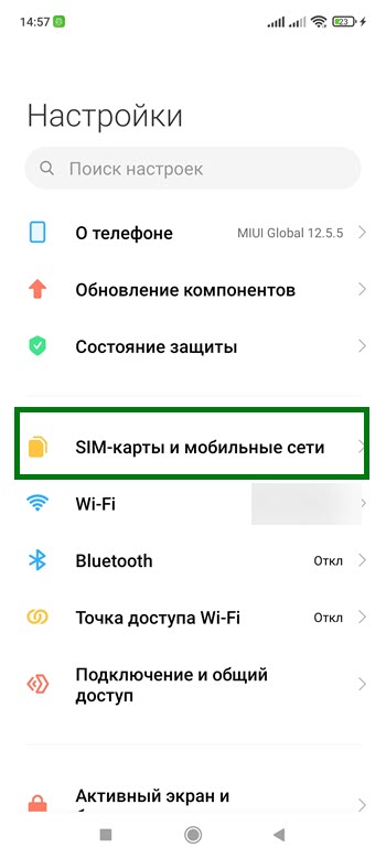 2. Находим раздел «SIM-карты и мобильные сети» и открываем его.