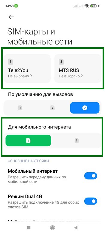 Для выхода в интернет, обычно используется карточка размещённая в первом лотке. Если такая ситуация не устраивает пользователя, можно зайти в настройки и изменить приоритеты.