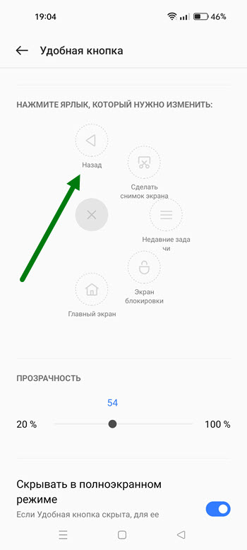Эту кнопку можно поместить в удобное для себя место, а также настроить её прозрачность и заменить некоторые функции на другие.