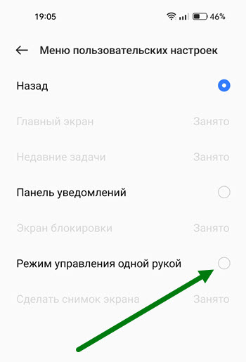 6. И выбираем на его место другую функцию, например режим управление одной рукой.