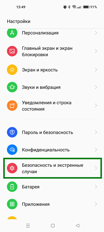 2. Далее переходим в раздел «Безопасность и экстренные случаи».