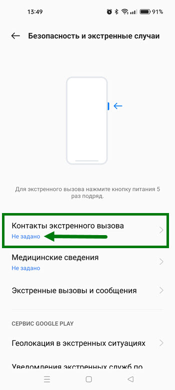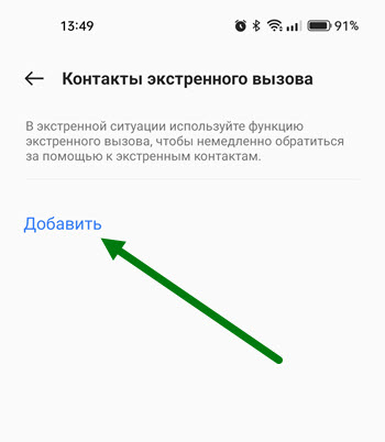 Как добавить контакты на страницу экстренного вызова в Реалми