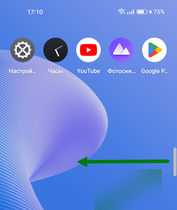 1. Открываем панель, потянув за чуть заметную полоску на краю экрана.