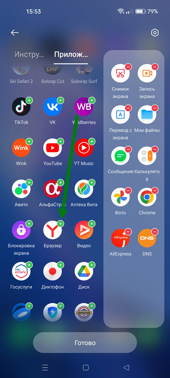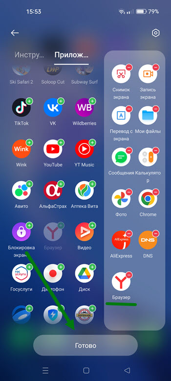 5. Когда все нужные иконки будут на месте, жмём на кнопку «Готово».