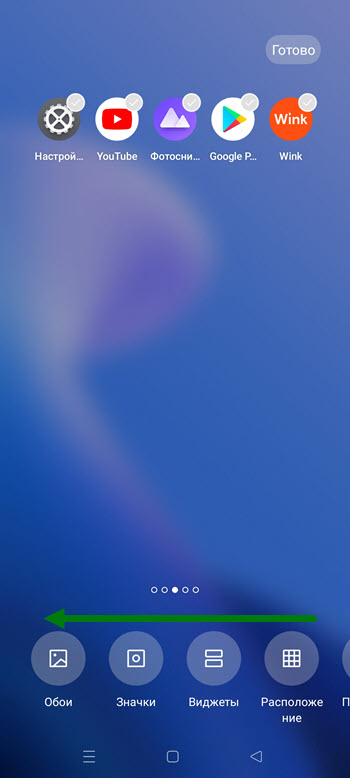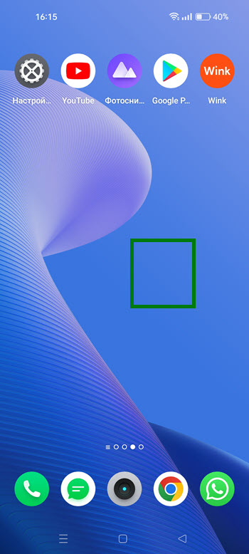 1. Нажимаем на свободную часть экрана, и удерживаем некоторое время 2-3 секунды, до появления меню.