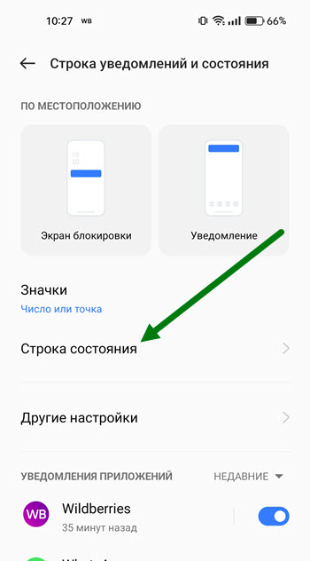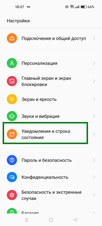 2. Далее переходим в раздел «Уведомления и строка состояния».